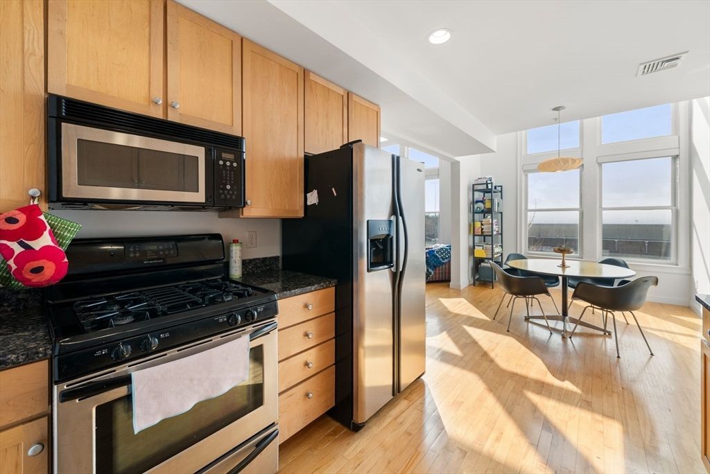 Penthouse living in the heart of Union Square. Set at the top of a professionally managed building, this bright duplex offers space, light, and a loft-style feel in an ideal location. Fifty-one steps up (yes, youll earn your views), youre welcomed into an open living and dining area with soaring ceilings, oversized windows, and excellent natural light. The kitchen features stone countertops, gas cooking, and stainless steel appliances, flowing seamlessly into the main space, perfect for everyday living or entertaining. Step out to your private deck for evening light, or retreat upstairs to the lofted primary suite overlooking the living area below. Additional features include central air, in-unit laundry, hardwood floors, and one off-street parking space. Moments to Union Square, with easy access to Harvard, Porter, and public transit, come explore all the Somerville has to offer.